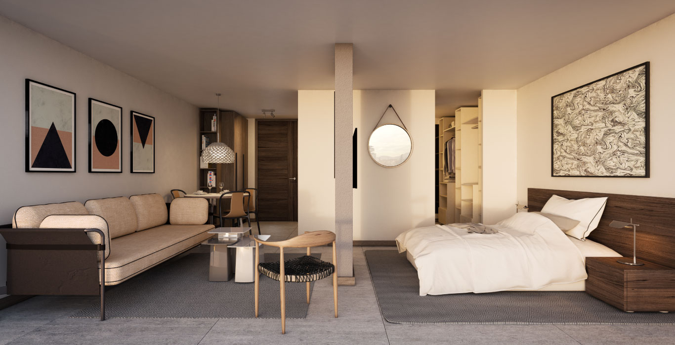 Las imágenes contenidas en este sitio web, son montajes fotográficos, bosquejos y croquis de contenido artístico, elaborados con fines ilustrativos que no constituyen una representación exacta de la realidad, al igual que el alhajamiento y decoración de los departamentos pilotos y espacios comunes. En consecuencia, no forman parte de las condiciones ofrecidas al comprador.