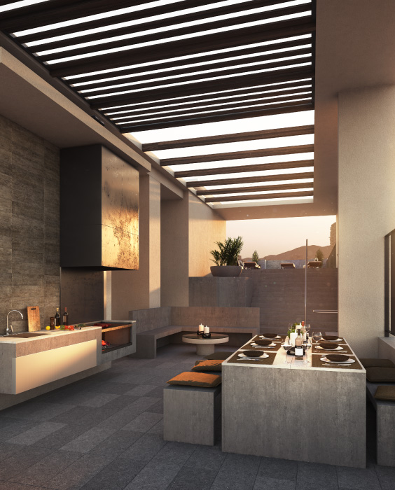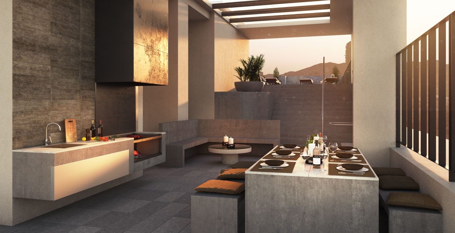 · Quincho en azotea con vista a la cordillera.