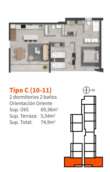 · Piso de gres porcelánico en todo el departamento.