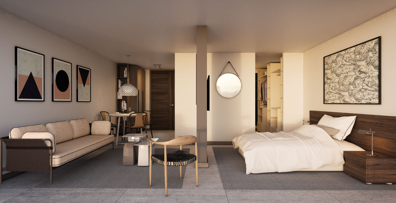 Las imágenes contenidas en este sitio web, son montajes fotográficos, bosquejos y croquis de contenido artístico, elaborados con fines ilustrativos que no constituyen una representación exacta de la realidad, al igual que el alhajamiento y decoración de los departamentos pilotos y espacios comunes. En consecuencia, no forman parte de las condiciones ofrecidas al comprador.